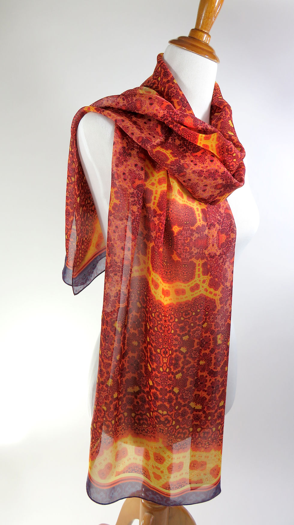 Small Silk Scarf, "Intarsia", 3D Fractal" Neckerchief