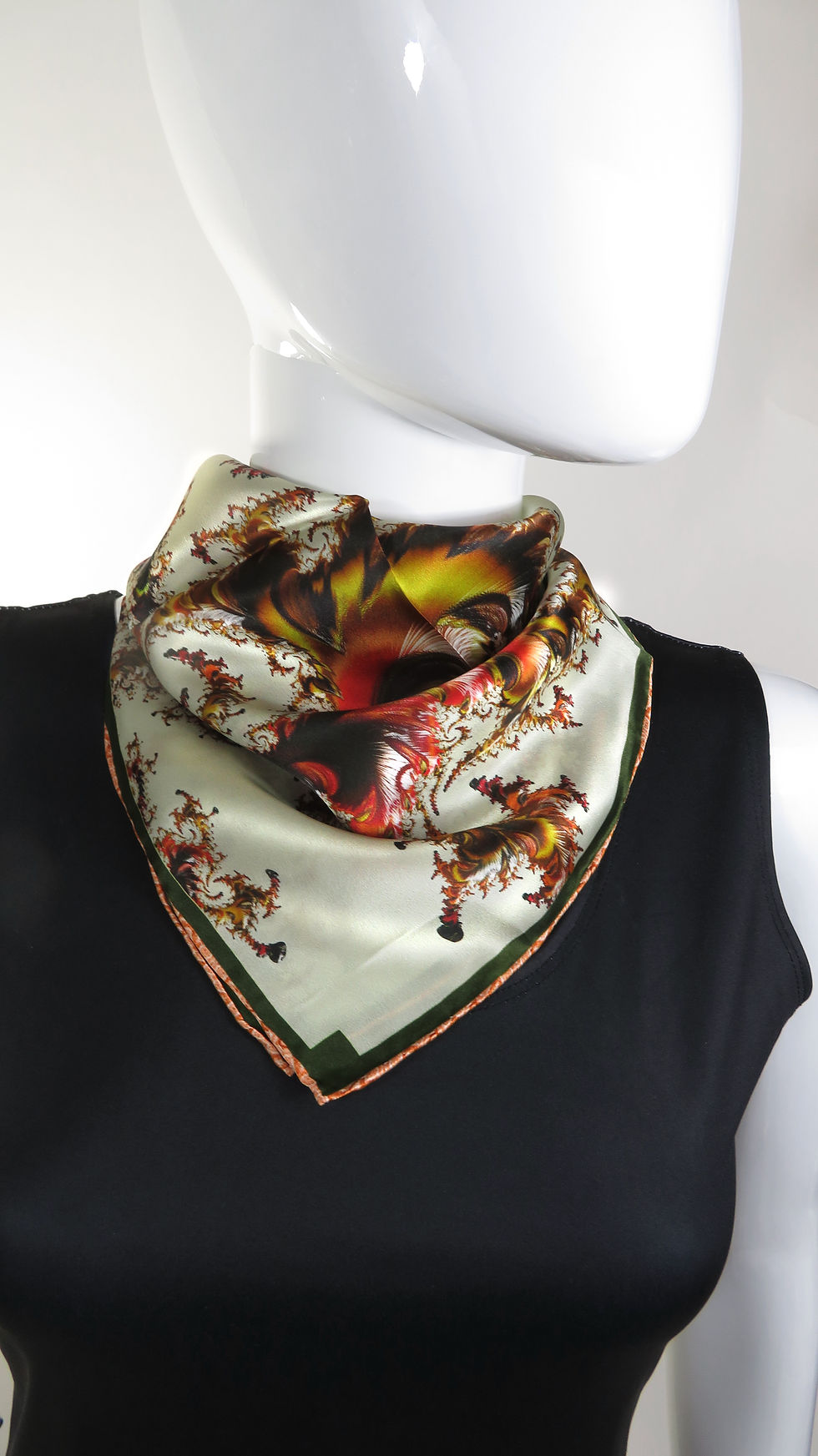 Diamond-shaped Silk Scarf, Silk Hat Scarf, "Architectonic Green" Fractal Design
